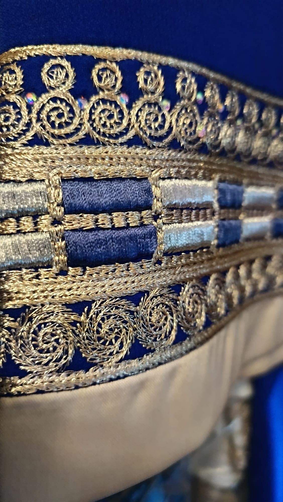 ✅ Aufwendige Stickerei in Silber- und Dunkelblau